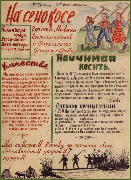 Газета «Молния» тагильского детдома. 1944 год.